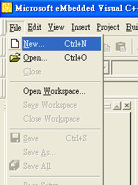 1. 啟動Embedded Visual C++ 4.0, 選擇File-->New