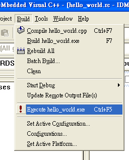 8. 選擇在Menu列中的Build--> Execute hello_world.exe
