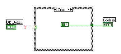 當 Boolean控制項傳出True時, caes結構傳出一True值給Boolean顯示器