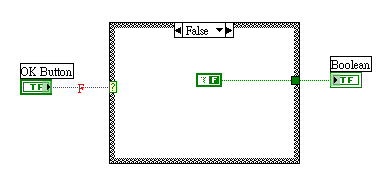 當 Boolean控制項傳出False時, caes結構傳出一False值給Boolean顯示器