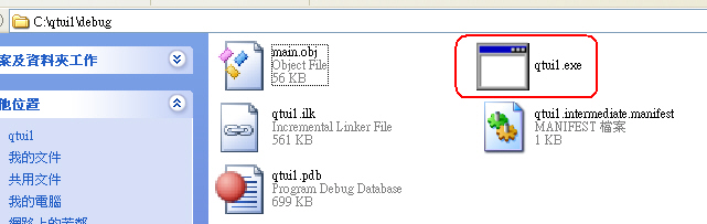 6. 接著cd debug,然後輸入qtui1,即可執行qtui1.exe