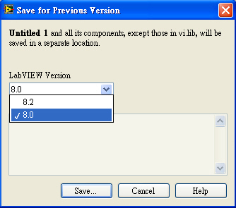 首先是從Labview 8.2本身來說,我們可以從File->Save for Previous Version中看到......