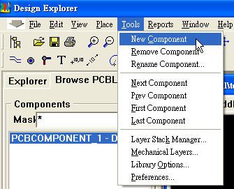 開啟PCB文件,在Tool-->New Component