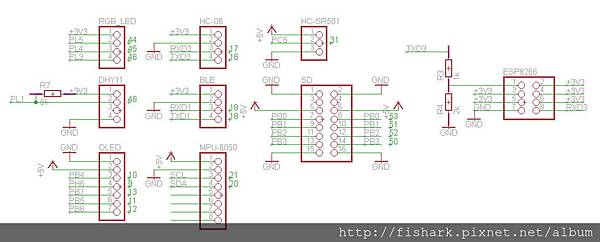 我計畫Layout一個PCB版,目前預計可以接以下8組硬體,可能也會保留BLE與WIFI Module接腳: