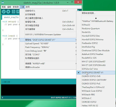 為了在Arduino上開發ESP32的開發版,我們需要在Arduino IDE上裝ES32 Add-On,