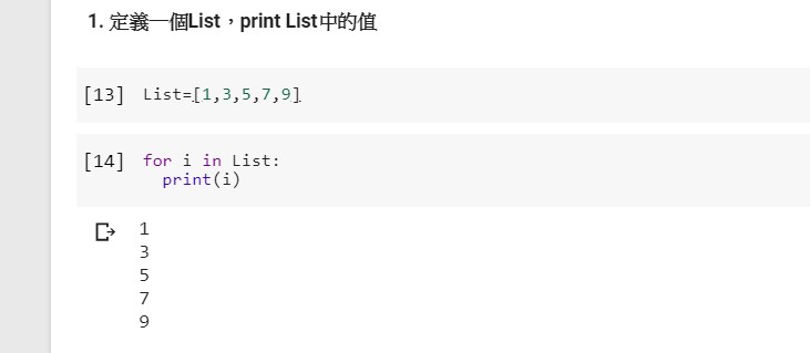 1. 定義一個List,print List中的值